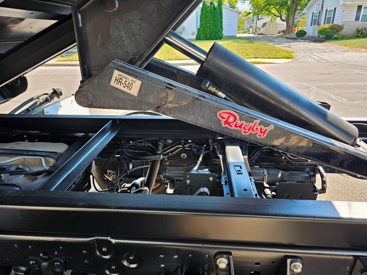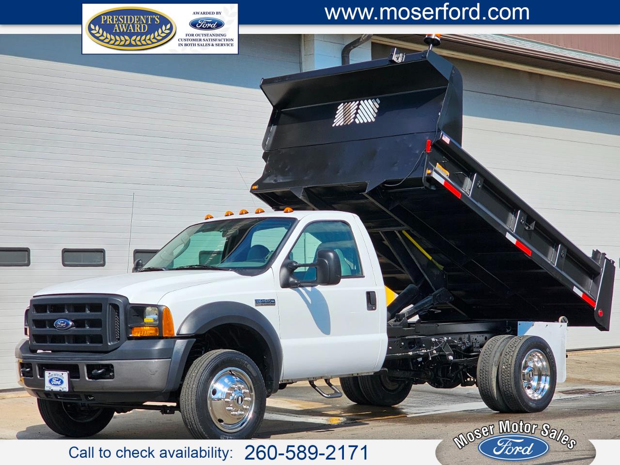UH775. 2006 Ford F-550. 2WD. XL, manual windows and locks. 6.8 Triton V10 gas. Auto transmission. 96,906 miles. 11' Eagle Truck dump body. 1/4 cab shield, 17" sides, vertical posts, double swing sloped tailgate, 6" spreader apron, spreader chains, pintle ball hitch, small 6 pole round electric, Rugby HR-540 hoist. California truck. Cold AC, hot heat. No check engine lights. Serviced and ready to go.
