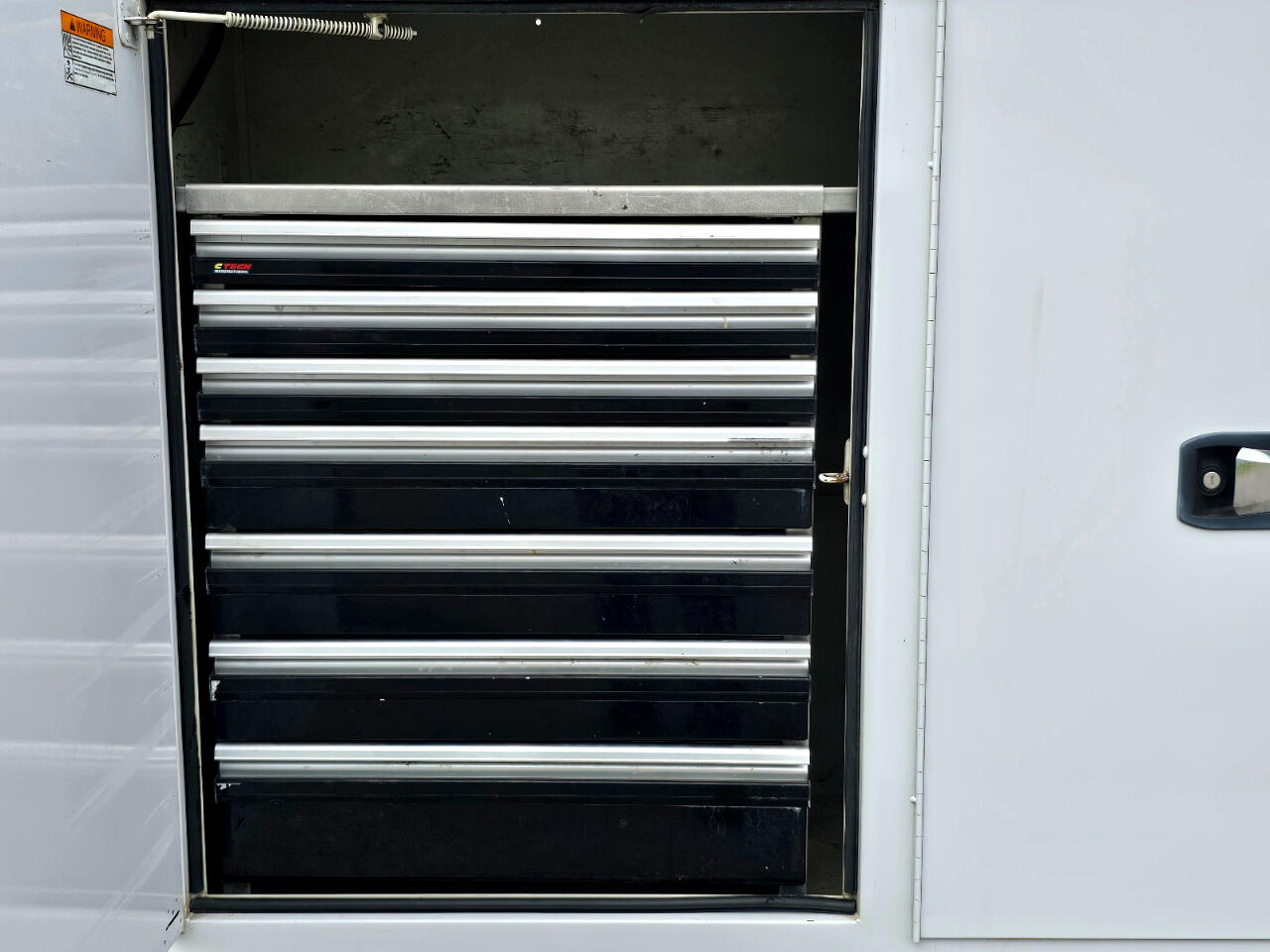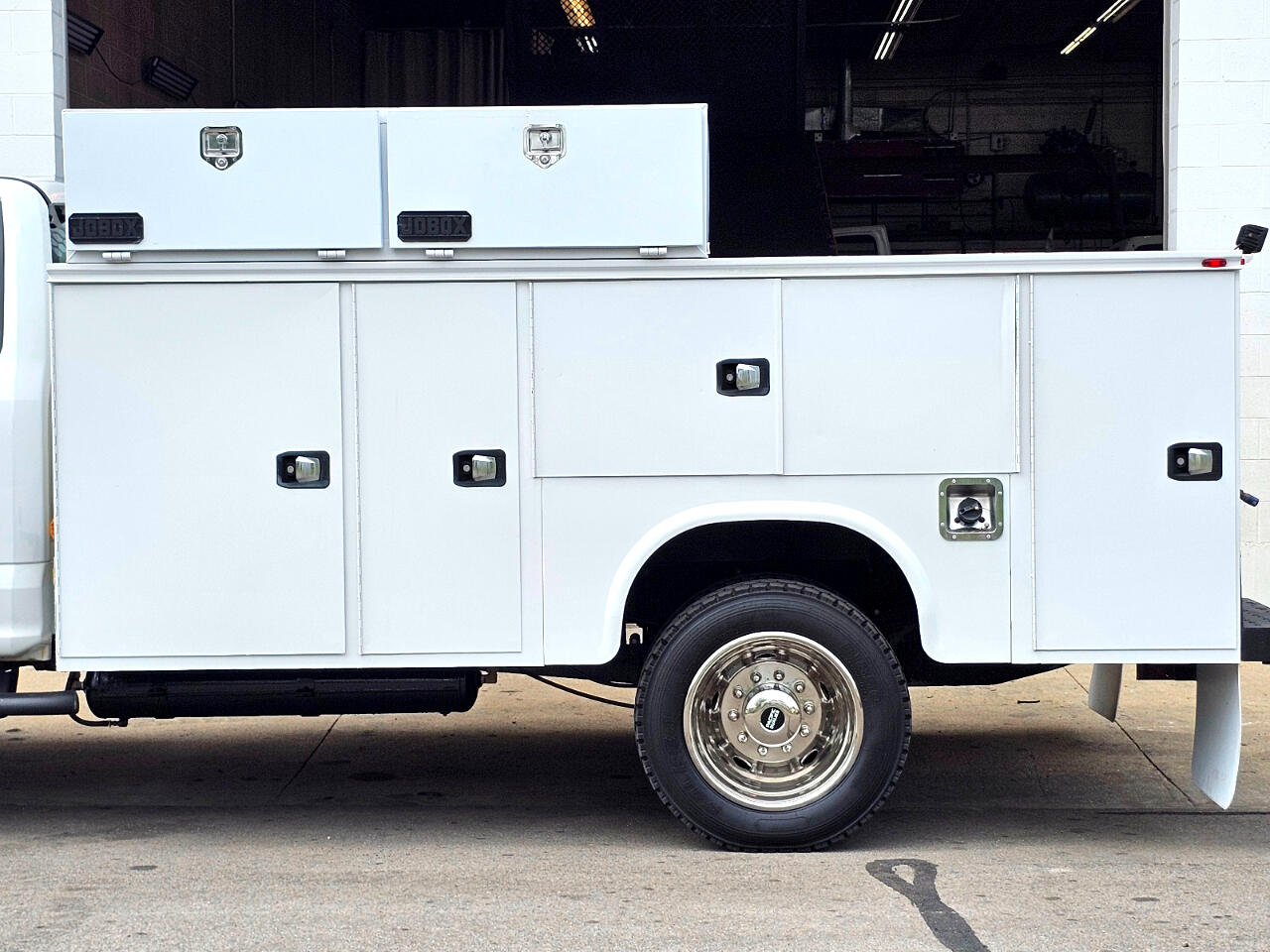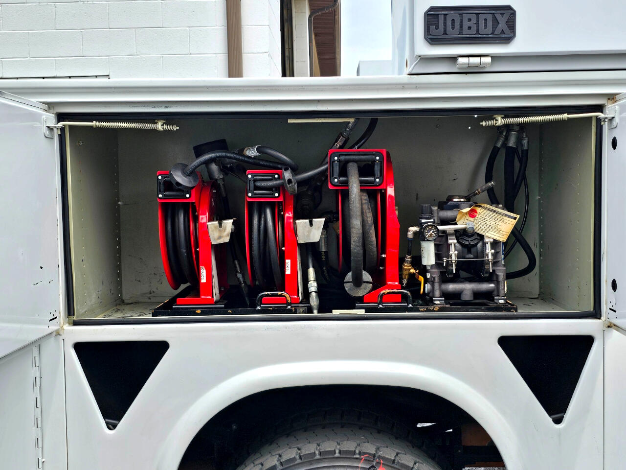 UH826. 2018 Ford F-550 4x4. Well equipped XL. 6.8 Triton V10 gas engine. 196.591 miles. 84" CA on 169" wheelbase. 11' Knapheide service body. 3 tank lube system, Mi-T-M comp/generator, 4 LH comp., 3 LH top boxes, 7 drawer Ctech in front left, 4 RH comp., 2 RH top boxes, tank comp in rear right, treadplate steel floor, receiver tube, RV spade. Price includes DOT inspection and 45 day temp plates.