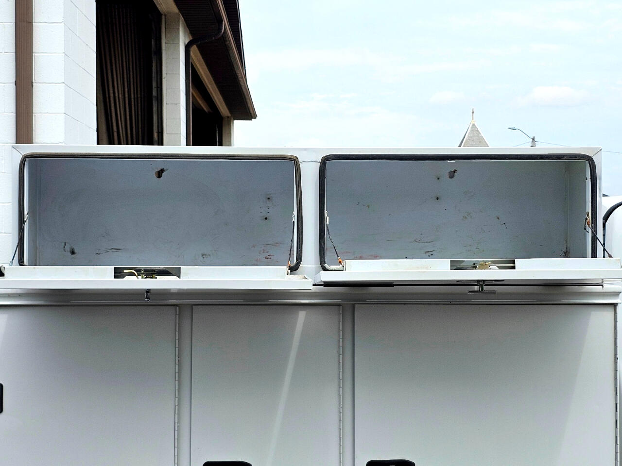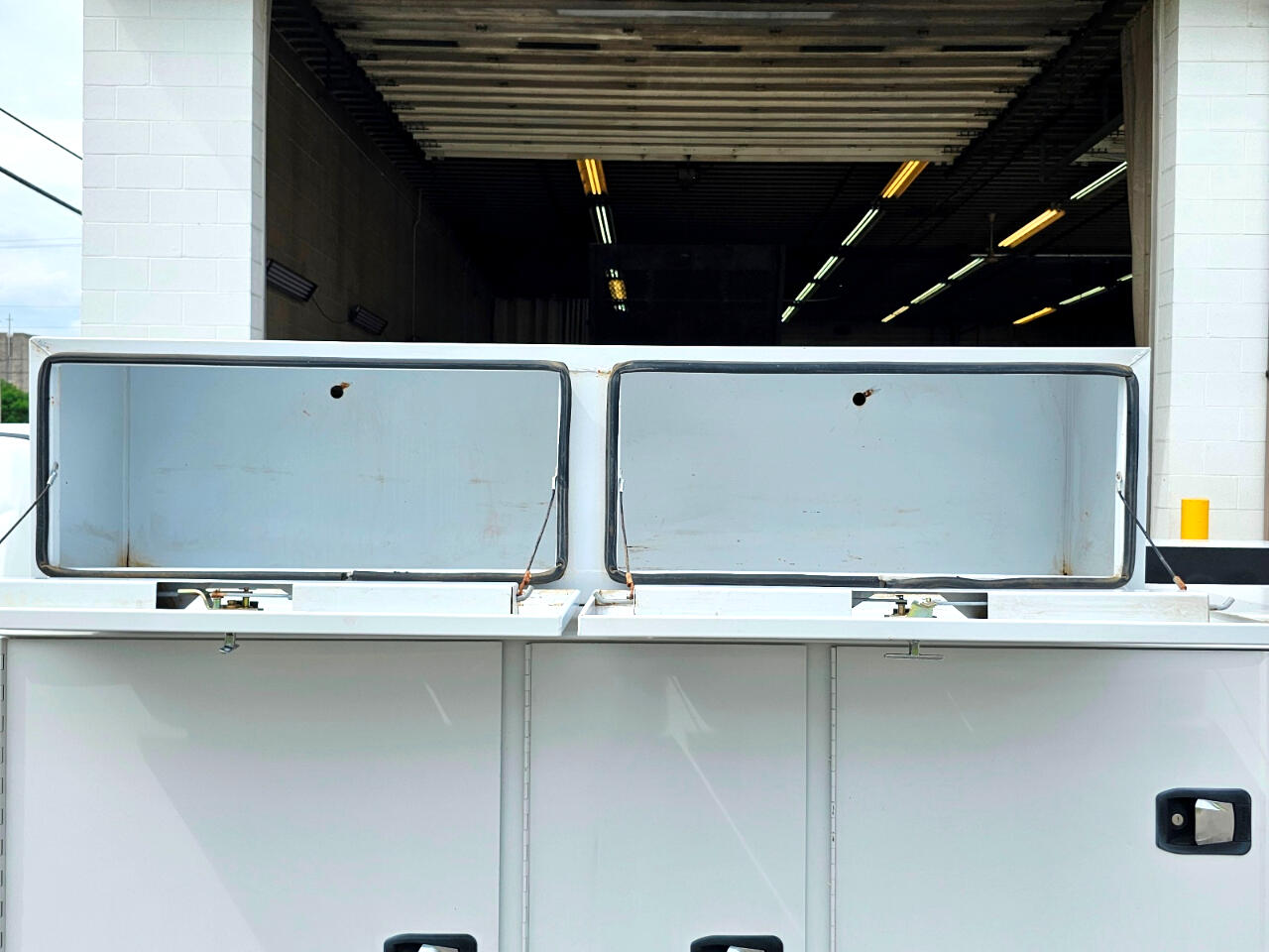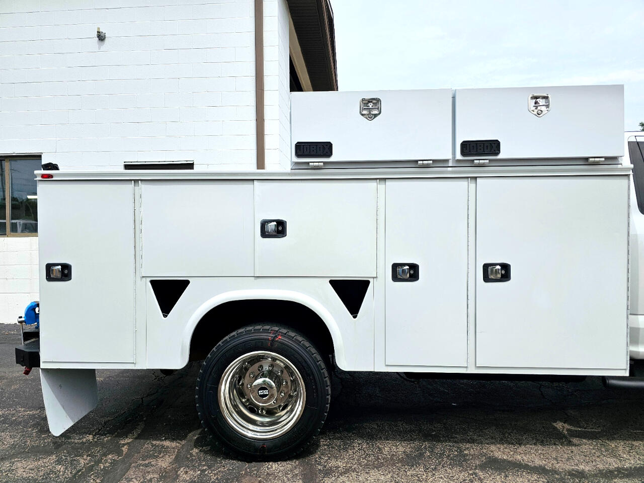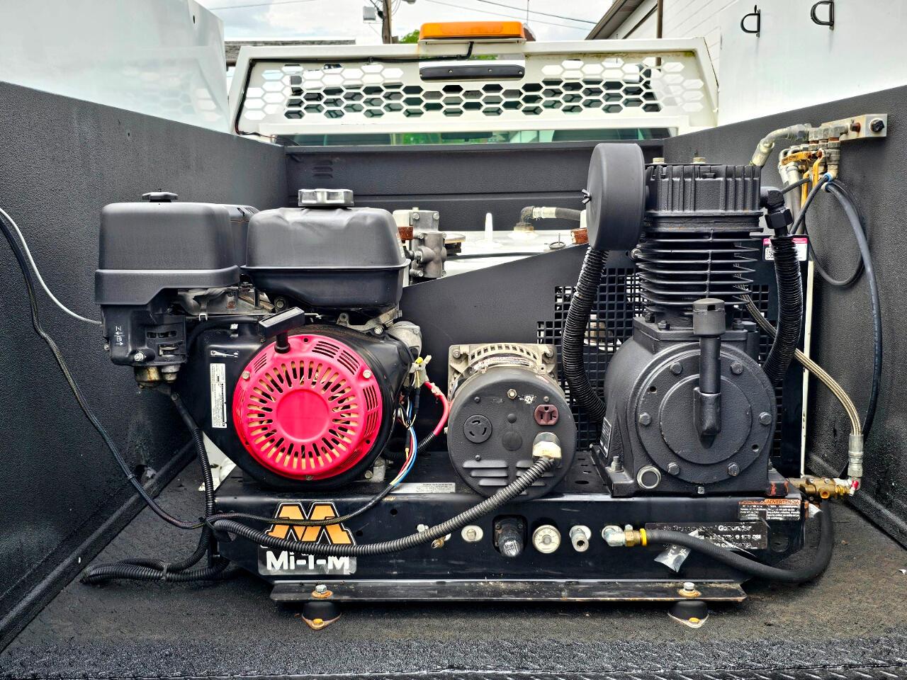 UH826. 2018 Ford F-550 4x4. Well equipped XL. 6.8 Triton V10 gas engine. 196.591 miles. 84" CA on 169" wheelbase. 11' Knapheide service body. 3 tank lube system, Mi-T-M comp/generator, 4 LH comp., 3 LH top boxes, 7 drawer Ctech in front left, 4 RH comp., 2 RH top boxes, tank comp in rear right, treadplate steel floor, receiver tube, RV spade. Price includes DOT inspection and 45 day temp plates.