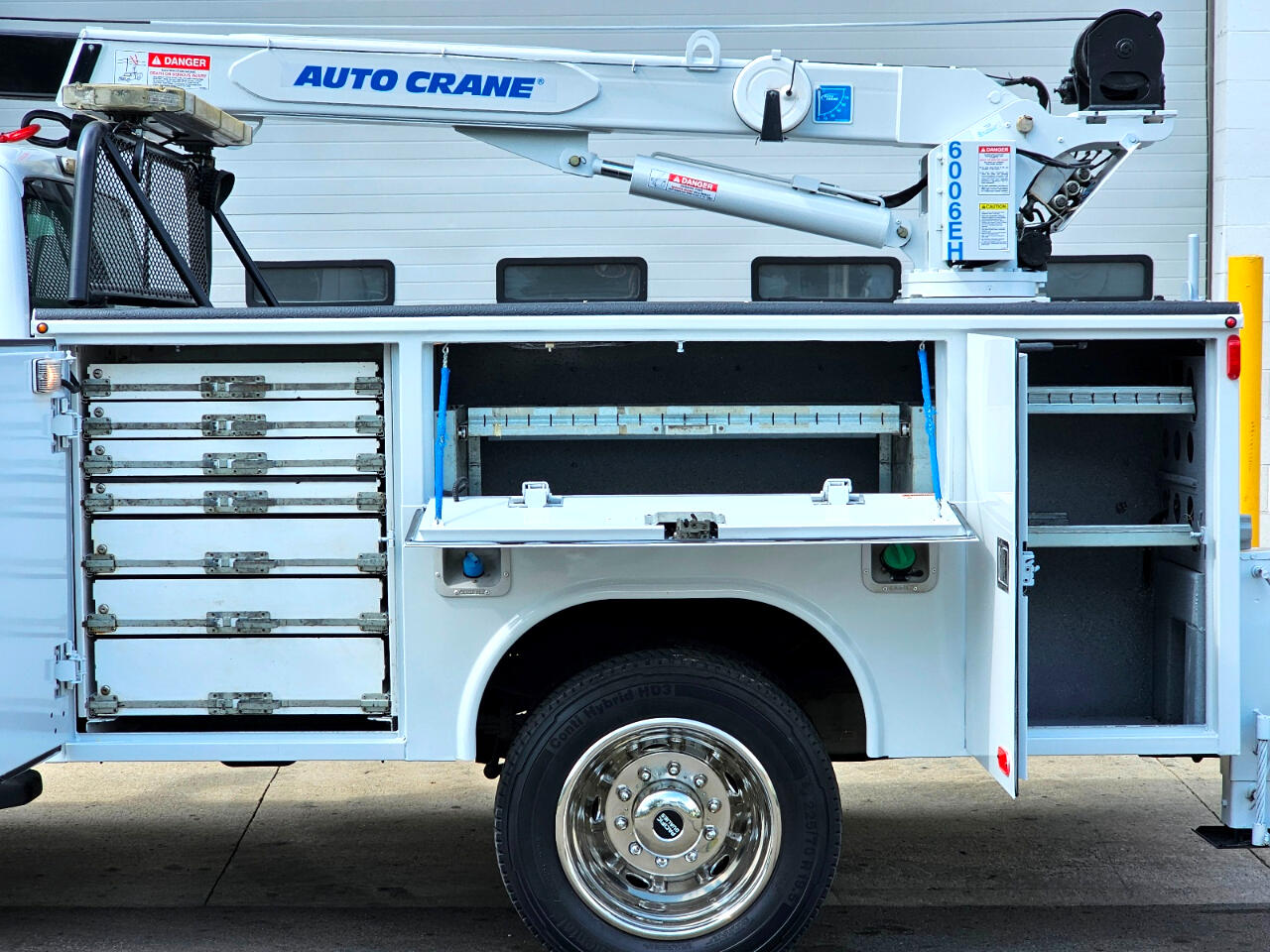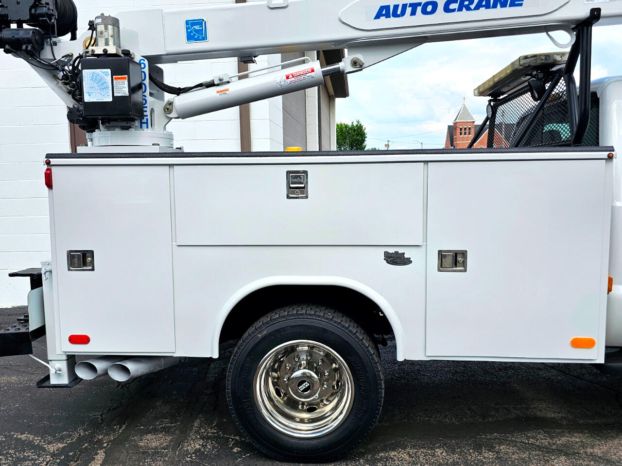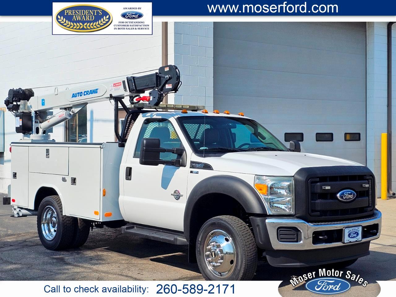 UH839. 2011 Ford F-550 4x4. Well equipped XL. 95508 miles. 6.7 Powerstroke diesel; 300hp. 9' Reading service body. Autocrane 6006EH crane w/ wired remote. 3 LH comp., 7 drawer unit in front left, 3 RH comp., treadplate steel floor, receiver tube, 7 way socket. Price includes DOT inspection and 45 day plates.
