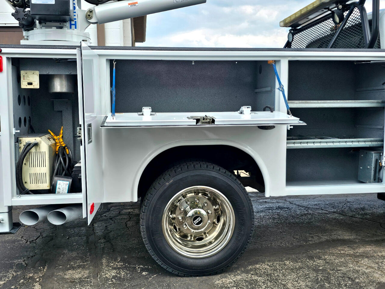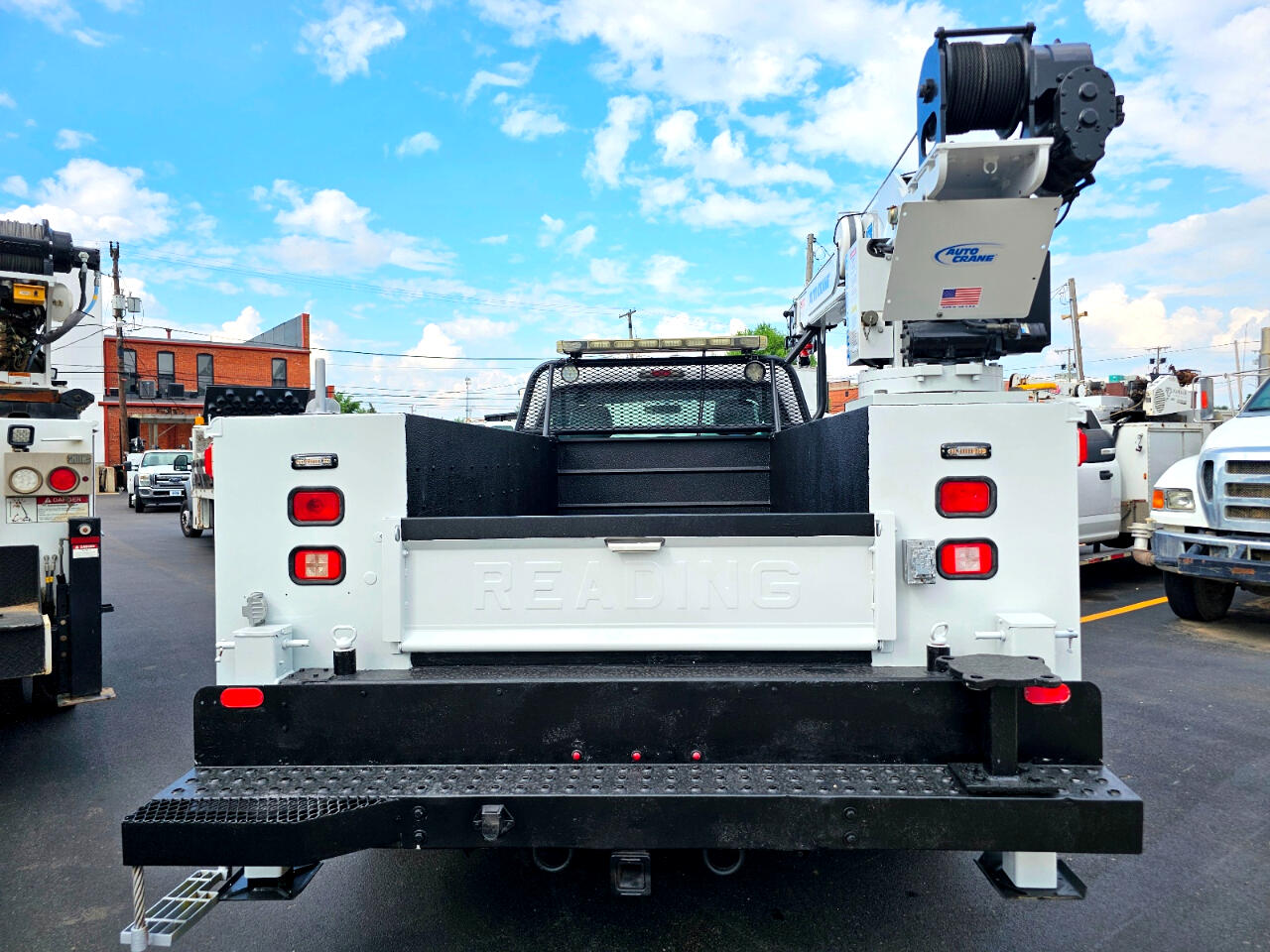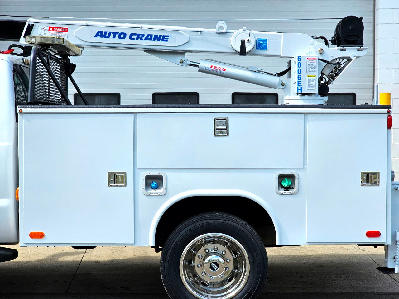 UH839. 2011 Ford F-550 4x4. Well equipped XL. 95508 miles. 6.7 Powerstroke diesel; 300hp. 9' Reading service body. Autocrane 6006EH crane w/ wired remote. 3 LH comp., 7 drawer unit in front left, 3 RH comp., treadplate steel floor, receiver tube, 7 way socket. Price includes DOT inspection and 45 day plates.