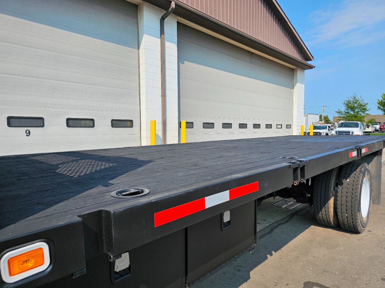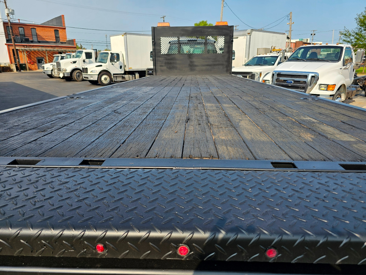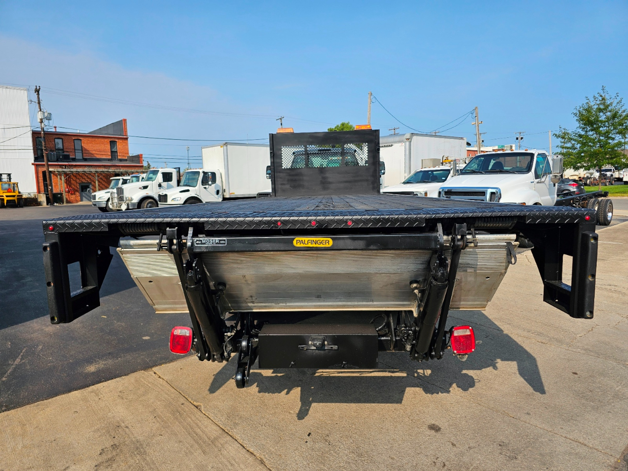 UH872. 2015 Ford F-650. XLT trim. Air ride seat and dump suspension. 6.7 Cummins ISB diesel. Allison RDS automatic transmission. Under CDL, 25999 GVWR. Air brakes. Well equipped. 24' Flatbed w/ Palfinger 3300lb liftgate (incl. remote control) 56" tall bulkhead. 2 underbody storage boxes per side. Price includes DOT inspection and 45 day plates.