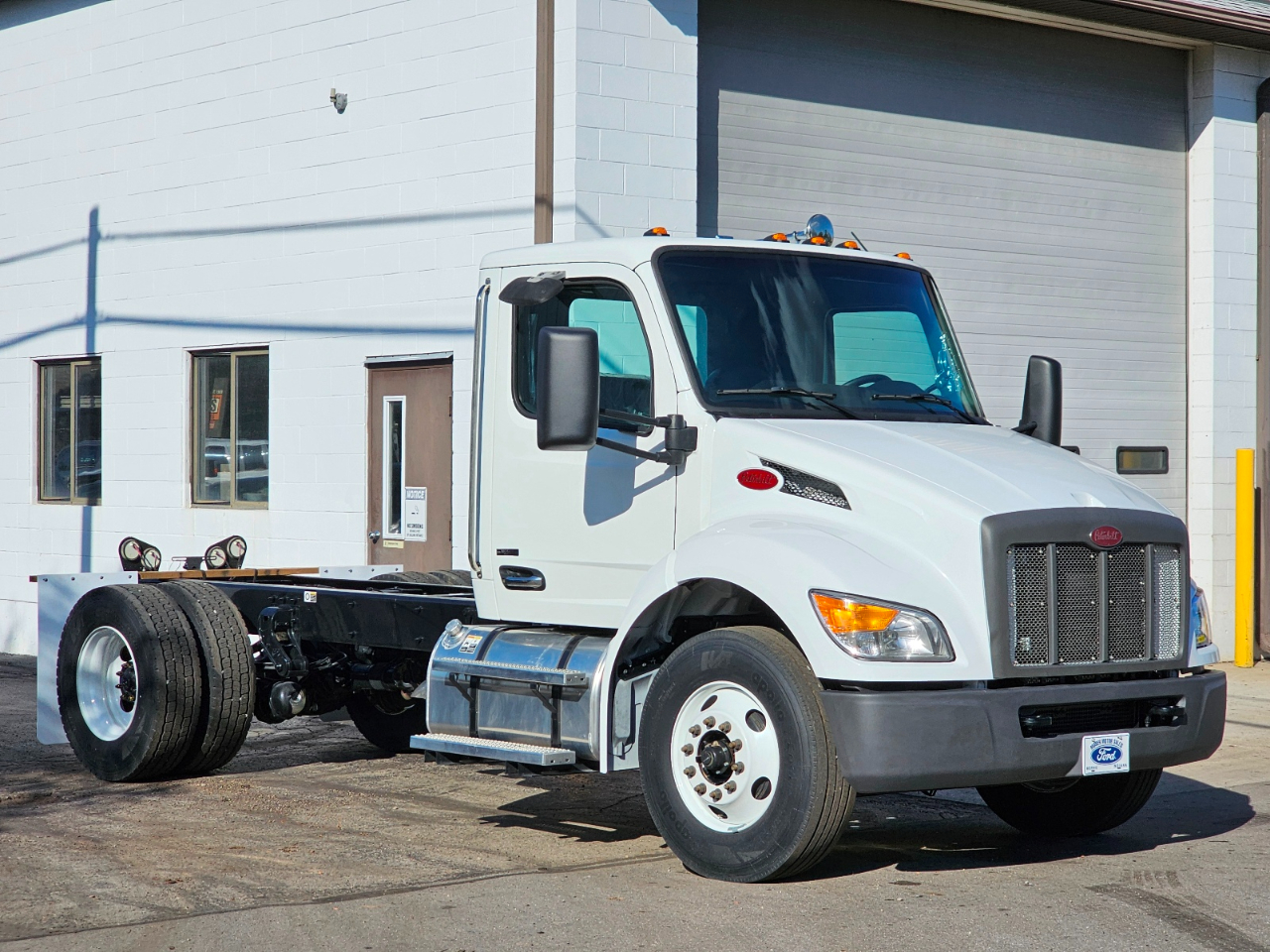 UH944. 2024 Peterbilt 537 chassis cab. 109" cab to axle on 176" wheelbase. 14' frame behind cab. 168 actual miles, 4 idle hours. Rear air ride. Air driver seat and cab. Air brakes w/ ABS. 33000 GVWR. Paccar 6.7 liter diesel; 300hp. 8 speed automatic transmission. Like new without the new price tag! Price includes DOT inspection and 45 day plates. Commercial financing for qualified customers and lower 48 state delivery available.
