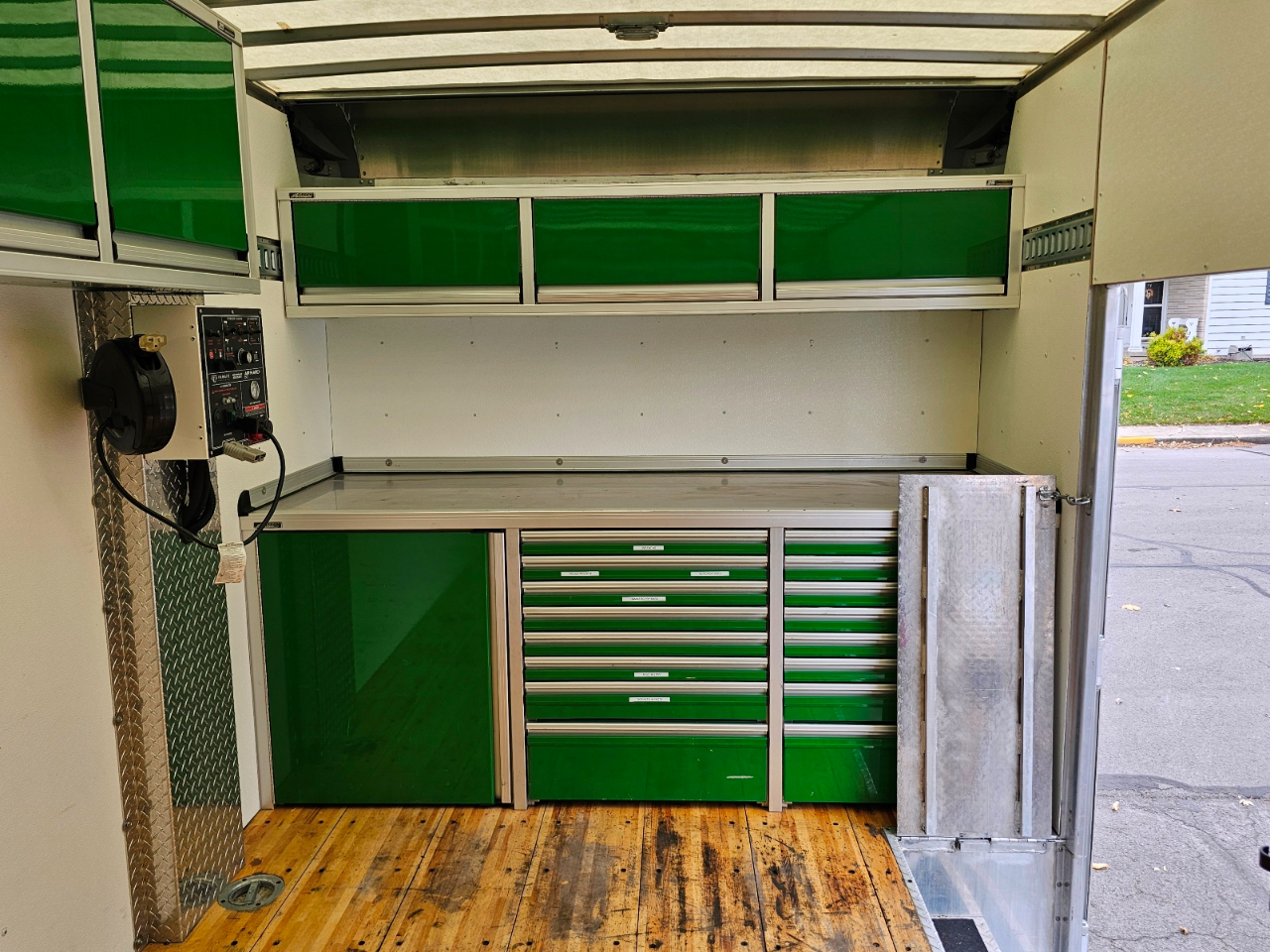 UH905. 2019 Ford F-550. RWD. Well equipped XL. 45K miles. 6.8 Triton V10 gas engine. VanAir Air-N-Arc 150 welder/gen/compressor. Morgan 14' aluminum van body. 96"w, 85"h, wood floor, translucent roof, Kemlite lining, 1 row E track, Ctech cabinets, drive on ramp. Price includes DOT inspection and 45 day plates. Price includes DOT inspection and 45-day plates. $148 document fee, transportation and sales tax (if applicable) are additional. We accept cash up to $10,000 before being required to report via IRS Form 8300, personal, certified or cashier’s checks which must be verified prior to completing purchase, credit card (3% fee) and financing to qualified buyers.