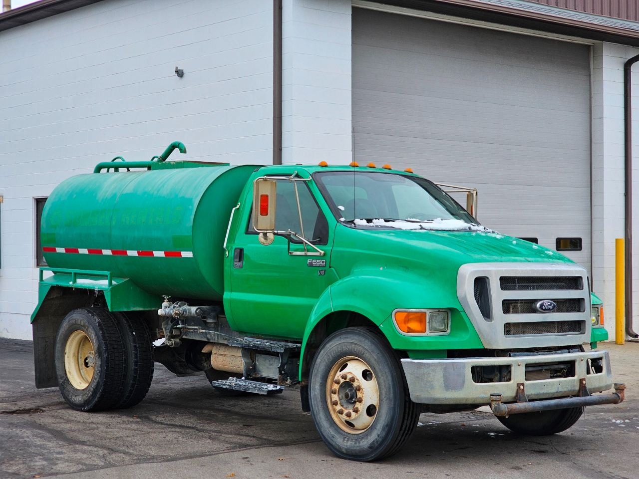 UH915. 2015 Ford F-650 water truck. 12K actual miles. 6.8 Triton V-10 gas engine. Automatic transmission. Hydraulic brakes. 10' Ledwell 2000gal water tank. 2 front nozzles, 2 rear nozzles, RH and LH outlets, cable operated, hose reel, front sight tube, rear fenders, top fill, baffle. Price includes DOT inspection and 45-day plates. $148 document fee, transportation and sales tax (if applicable) are additional. We accept cash up to $10,000 before being required to report via IRS Form 8300, personal, certified or cashier’s checks which must be verified prior to completing purchase, credit card (3% fee) and financing to qualified buyers. Photos taken prior to reconditioning.