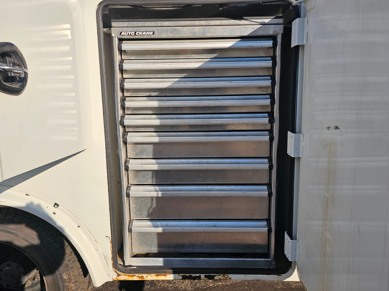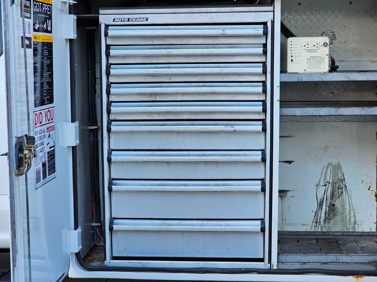 UH960. 2017 Ford F-550. 213K miles. 2WD. Well equipped XL. Supercab. 84" CA on 192" wheelbase. 6.7 Powerstroke diesel. Auto transmission. Autocrane HC-5000 lb hydraulic crane w/ wired remote. Hyd. outriggers. Boss BA435 hyd. compressor. 11' Altec mechanics service body. 4 compartments per side, 9 drawer unit in front left, 9 drawer unit in 2nd RH, master locks, treadplate steel floor, enclosed top, 24" tail, receiver tube, RV spade. Price includes DOT inspection and 45-day plates. $148 document fee, transportation and sales tax (if applicable) are additional. We accept cash up to $10,000 before being required to report via IRS Form 8300, certified or cashier’s checks which must be verified prior to completing purchase, credit card (3% fee) and financing to qualified buyers. Photos taken prior to reconditioning.